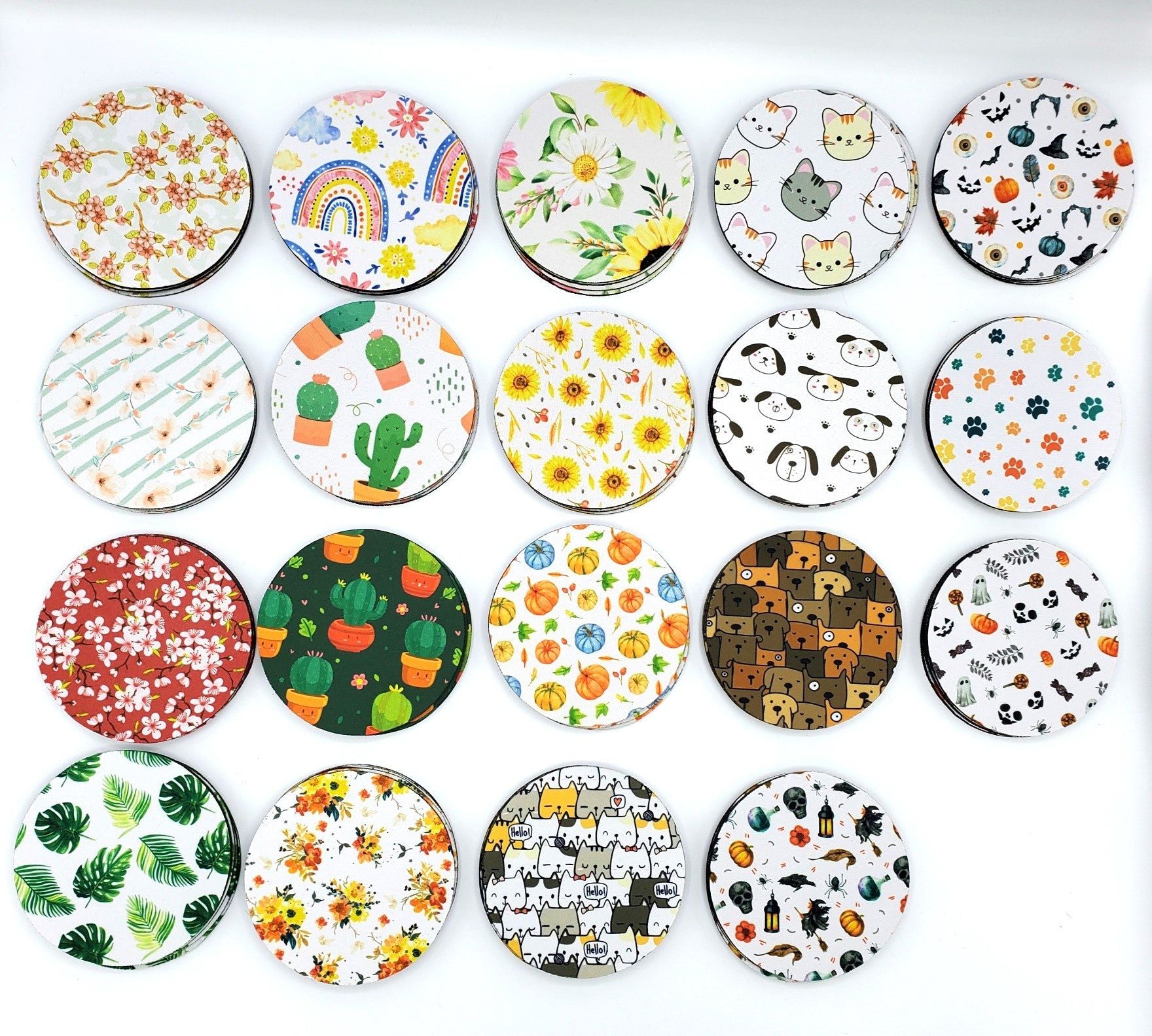 Protect your tables while adding a touch of style with our drink coaster. This versatile coaster helps prevent water marks and adds a playful touch to any table. It measures 4 inches in diameter and is an essential accessory for any home. Cheers to no more water rings! The designs are infused into the fabric so they can withstand washing and shouldn't fade.